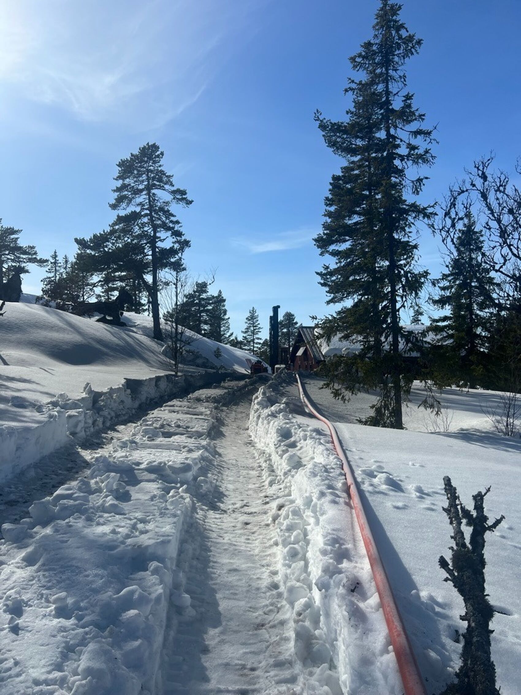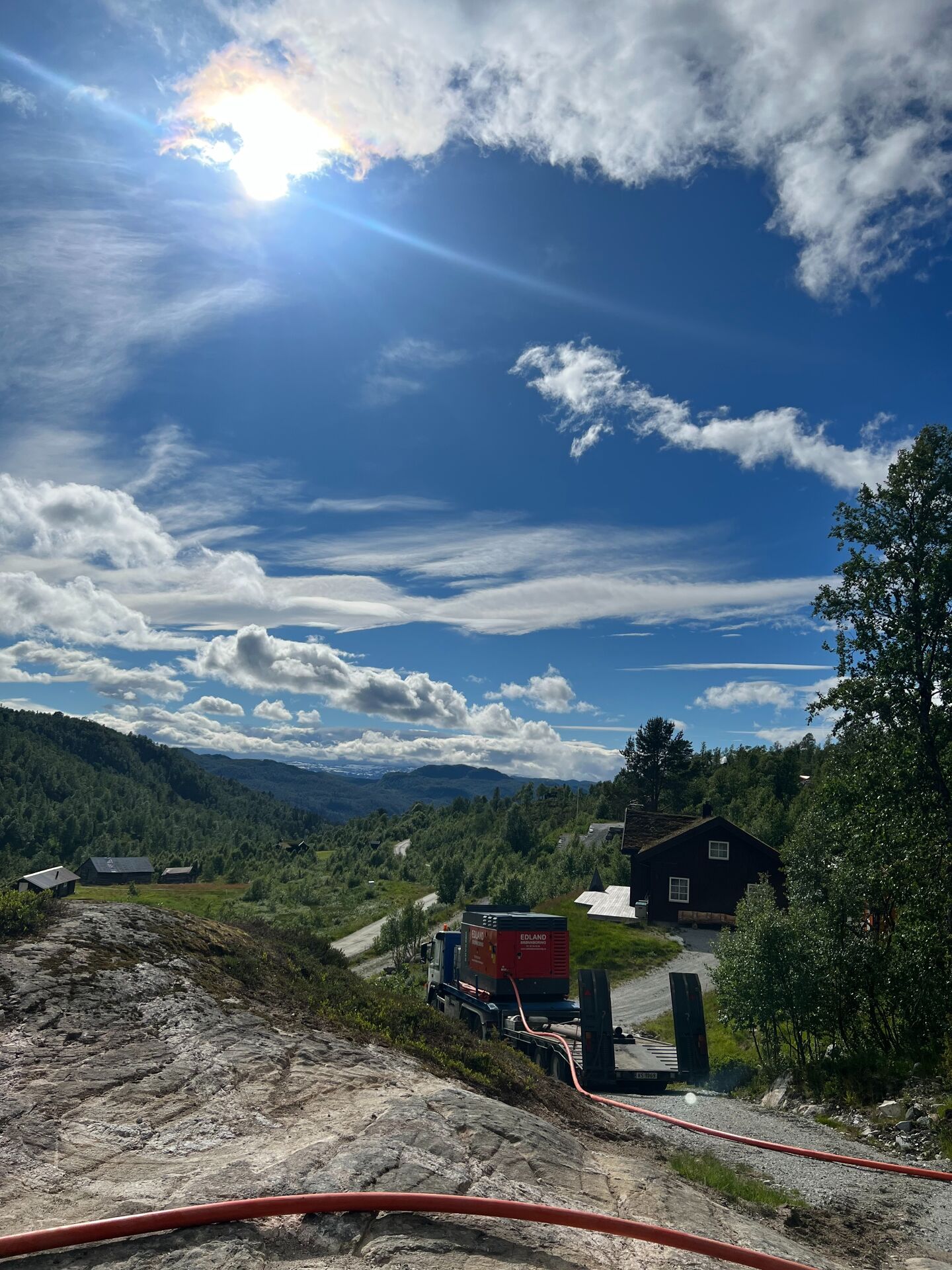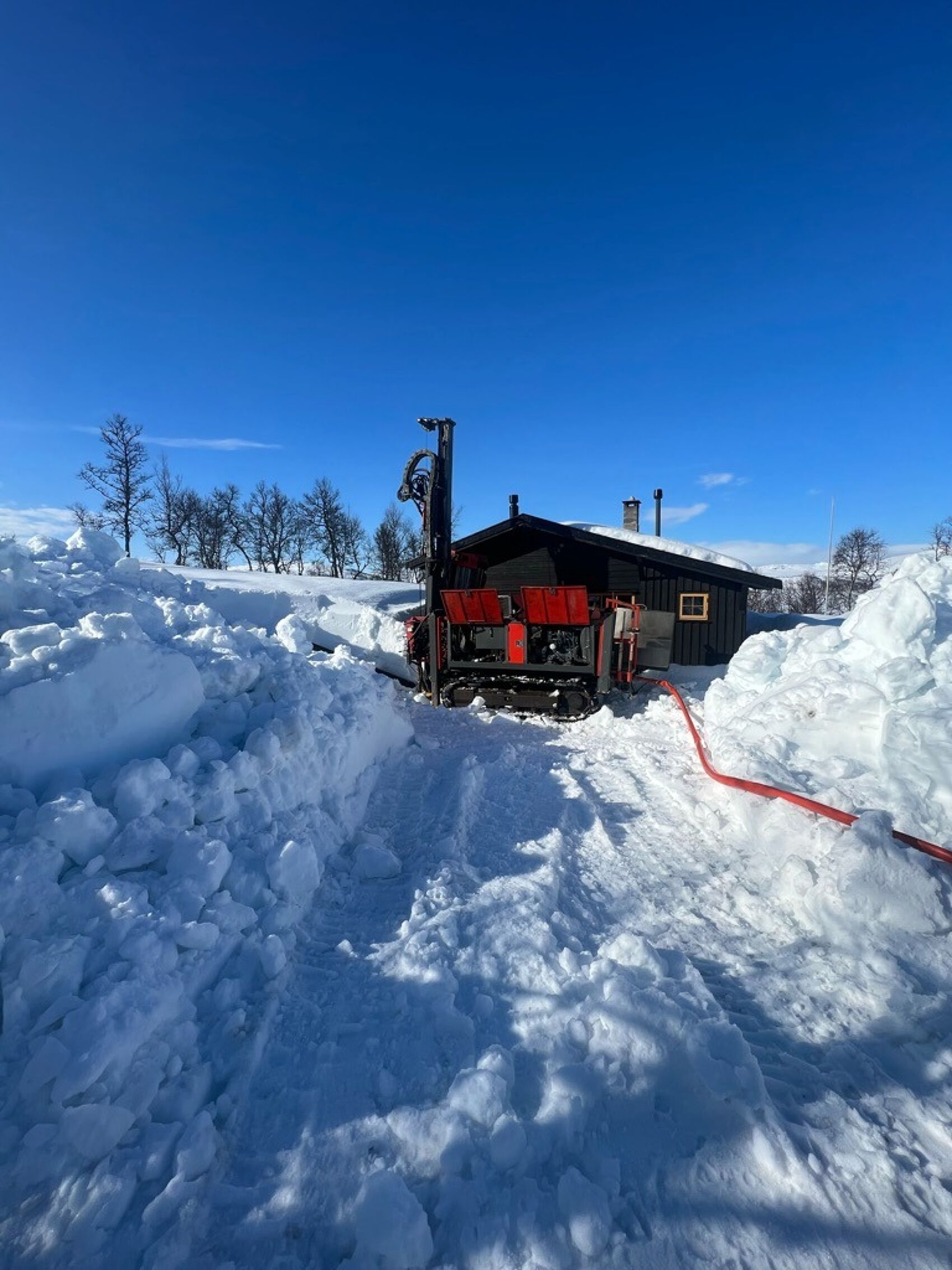 Ligg hytta di langt frå bilveg forutset dette sjølvsagt løyve til motorisert ferdsel i utmark i frågrunneigar og kommune. Vår borerigg er spesialtilpassa for boring på hytter som ligg eit stykke frå bilveg. Me har i slike tilfelle veldig god erfaring når det gjeld boring på seinvinter og vår, fordi ein då kan belte boreriggen på snoveg. På denne måten vil ein unngå skader i terreng og myrer kan passerast. Me leverar pumpeanlegg til hytter der det er innlagt straum, aggregat eller om einynskjer ei gamaldags håndpumpe. Ein frostsikker vasspost på hytteveggen er det meoftastmonterar. Andre løysningar kan me også tilby.